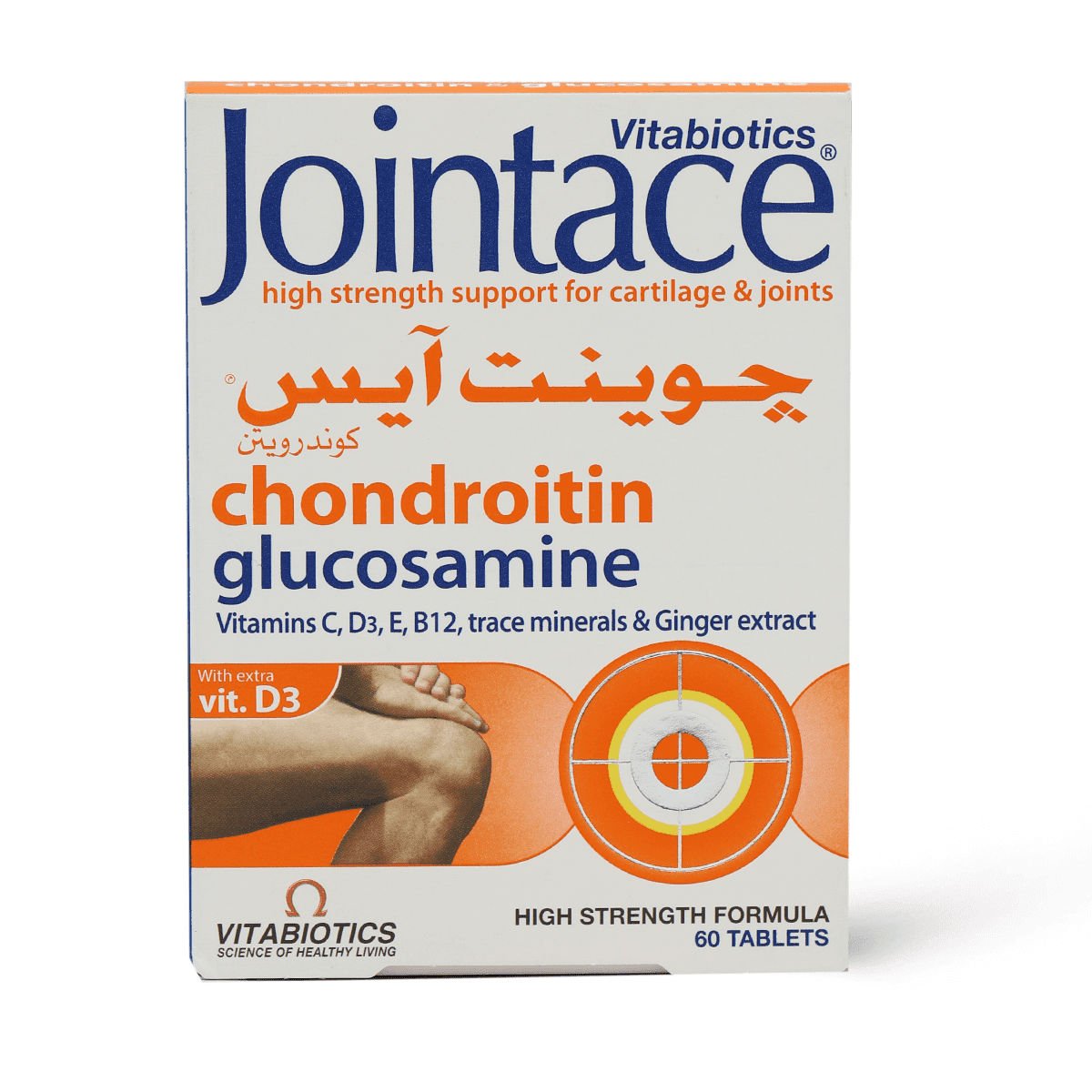 اسم المنتج: جوينتاس كوندرودين العلامة التجارية: Jointace الوصف العام: مكمل غذائي مصمم لدعم صحة المفاصل والعظام. يحتوي على الجلوكوزامين والكوندرويتين، وهما مكونان أساسيان لبناء الغضاريف والمفاصل، مما يساعد على الحفاظ على مرونتها وحركتها. فوائد المنتج: • يدعم صحة الغضاريف والمفاصل. • يقلل من آلام وتصلب المفاصل. • يحسن من حركة المفاصل ومرونتها. • يساعد على حماية المفاصل من التلف. تعليمات الاستخدام: تناول قرصين يوميًا مع الوجبة الرئيسية، أو حسب توجيهات الطبيب. معلومات إضافية: عبوة تحتوي على 60 قرص. هذا المنتج مكمل غذائي. يُحفظ بعيدًا عن متناول الأطفال.