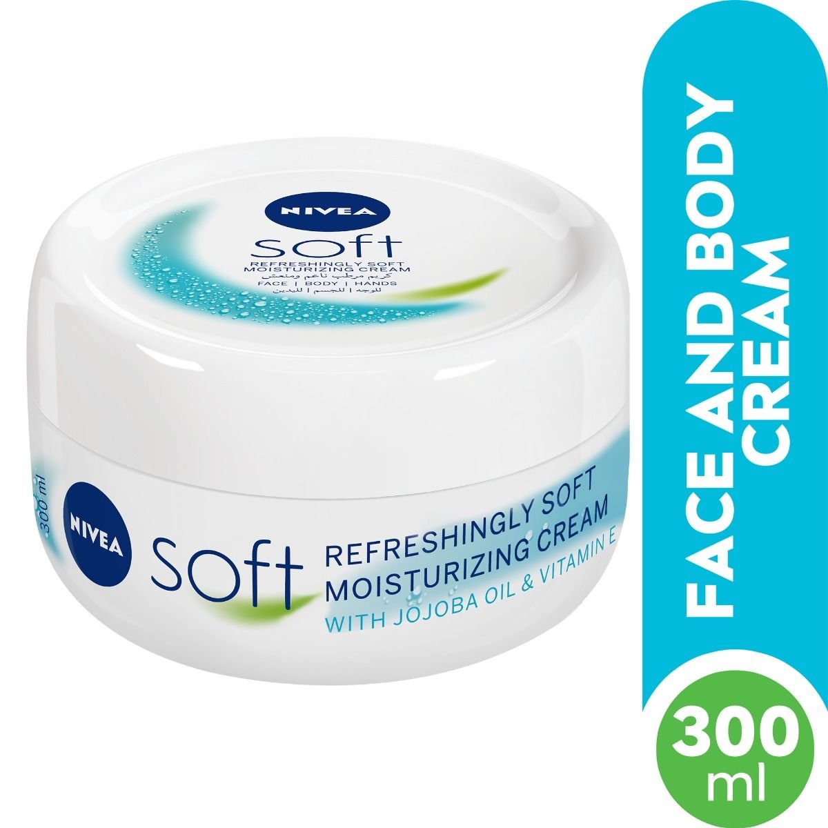 اسم المنتج: نيفيا كريم سوفت. العلامة التجارية: نيفيا (NIVEA). الوصف العام: كريم مرطب خفيف وفعال، يحتوي على زيت الجوجوبا وفيتامين هـ. يُمتص بسرعة ولا يترك أي شعور دهني. فوائد المنتج: يوفر ترطيبًا عميقًا للوجه والجسم واليدين، يترك البشرة ناعمة ونضرة، ويمنحها حيوية وإشراقة طبيعية. تعليمات الاستخدام: ضعي كمية مناسبة على بشرة نظيفة وجافة ودلكيها بلطف حتى يتم امتصاصها بالكامل. يُستخدم يوميًا. معلومات إضافية: مناسب لجميع أنواع البشرة. تم اختباره من قبل أطباء الجلد.