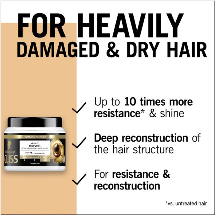 ماسك جليس ريبير (Gliss Repair Hair Mask) – علاج مكثف لترميم وتغذية الشعر المتضرر. يمنح شعرك عناية عميقة بفضل تركيبته الغنية ببروتين الكيراتين والزيوت المغذية. يعمل هذا القناع على إصلاح التلف الهيكلي في وقت قياسي، مما يقلل من تكسر الشعر ويمنحه نعومة فائقة ولمعاناً صحياً يدوم طويلاً، مع سهولة تامة في التمشيط.