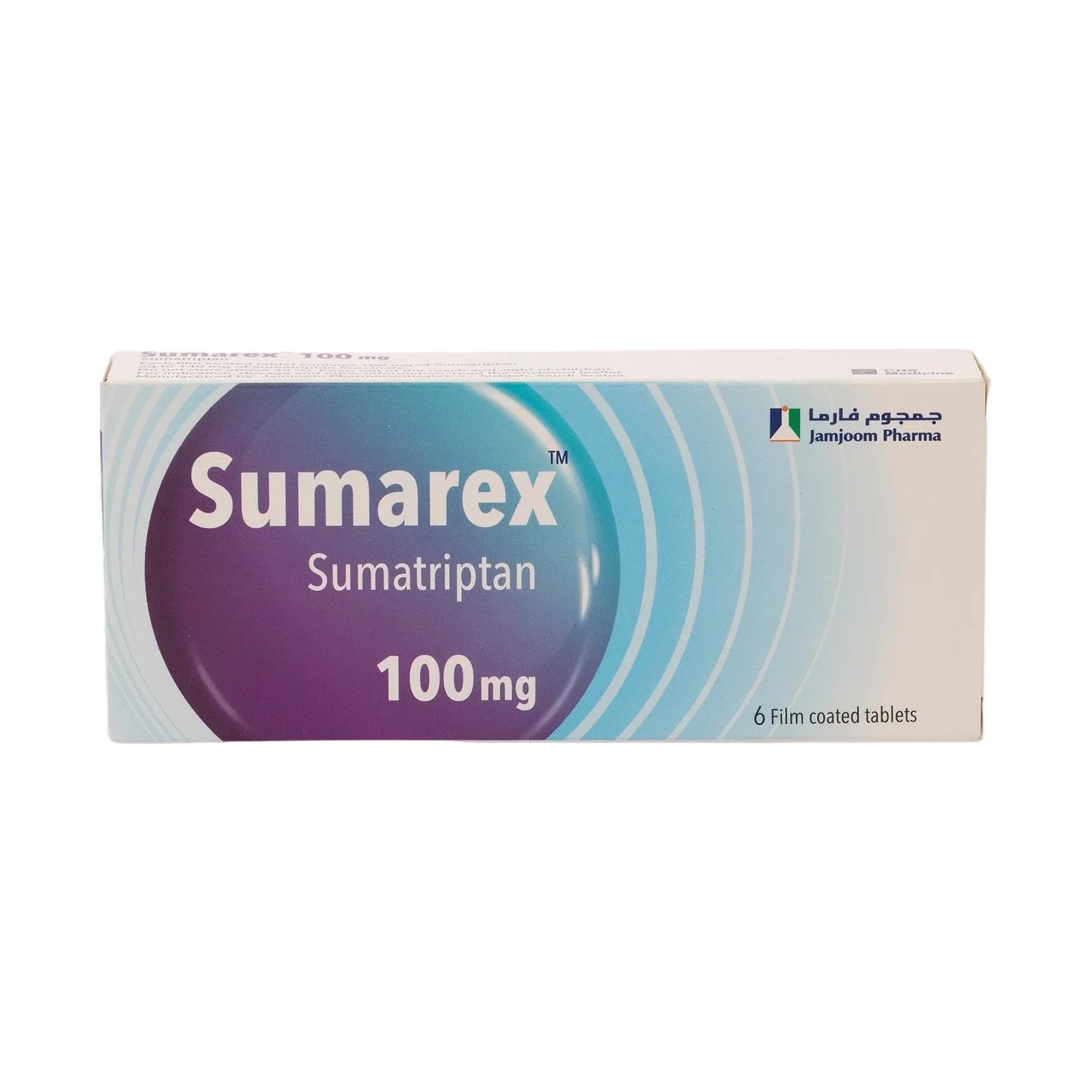 اسم المنتج: SUMAREX 100 MG 6 TABLETS العلامة التجارية: SUMAREX الوصف العام: دواء يستخدم لعلاج نوبات الصداع النصفي الحادة. يحتوي على المادة الفعّالة سوماتريبتان، التي تعمل على تضييق الأوعية الدموية حول الدماغ، مما يخفف من الألم والأعراض الأخرى المصاحبة للصداع النصفي. فوائد المنتج: 1. تخفيف الصداع النصفي: يوفر راحة سريعة وفعالة من الألم والأعراض مثل الغثيان والحساسية للضوء والصوت. 2. سهولة الاستخدام: أقراص سهلة البلع يمكن تناولها عند الشعور ببداية نوبة الصداع. 3. تحسين جودة الحياة: يساعد على استعادة النشاط اليومي بسرعة. تعليمات الاستخدام: يُؤخذ قرص واحد (100 ملغ) عند ظهور أولى علامات الصداع النصفي. لا يُستخدم للوقاية من النوبات. معلومات إضافية: – الشكل الصيدلاني: أقراص (TABLETS). – التحذيرات: يُصرف بوصفة طبية فقط. لا يُستخدم في حالات أمراض القلب أو ارتفاع ضغط الدم غير المسيطر عليه.
