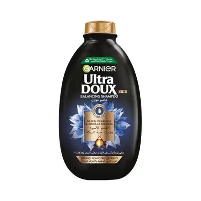 سائل ULTRA DOUX WITH BLACK CHARCOAL بحجم 200 مل، تركيبة مبتكرة بالفحم الأسود وزيت حبة البركة لتنقية الشعر وفروة الرأس. يعمل على امتصاص الشوائب والزيوت الزائدة، مما يترك الشعر نظيفاً ومنتعشاً وخفيفاً.