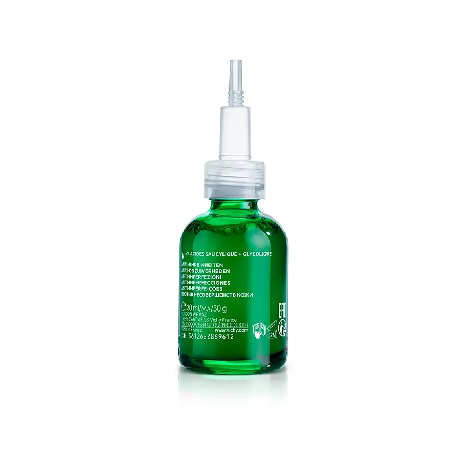 اسم المنتج: vichy normaderm serum 30 ml ُ ُالعلامة التجارية: فيشي (Vichy) ُ ُالوصف العام: سيروم نورماديرم هو منتج للعناية بالبشرة الدهنية والمعرضة للحبوب. تركيبته تحتوي على حمض الساليسيليك، وحمض الجليكوليك، مما يعمل على تقشير البشرة بلطف، وتضييق المسام، وتقليل العيوب والبقع الداكنة. ُ ُفوائد المنتج: ُ ُ• يقلل من المسام الواسعة والعيوب. ُ ُ• يوحّد ملمس البشرة ويحسن من صفائها. ُ ُ• يتحكم في إفراز الزيوت. ُ ُ• يمنح البشرة مظهراً صحياً. ُ ُتعليمات الاستخدام: ضعي بضع قطرات على وجه نظيف وجاف، وقمي بالتدليك بلطف. يُستخدم صباحاً ومساءً. ُ ُمعلومات إضافية: الحجم: 30 مل.