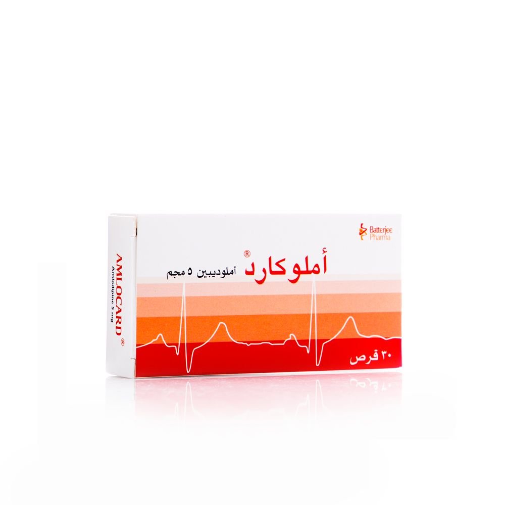 اسم المنتج: أملوكارد 5 ملغ. العلامة التجارية: أملوكارد (Amlocard). الوصف العام: دواء يحتوي على مادة أملوديبين التي تنتمي إلى فئة حاصرات قنوات الكالسيوم، وتستخدم لعلاج ارتفاع ضغط الدم والذبحة الصدرية. فوائد المنتج: يُساعد على استرخاء الأوعية الدموية وتوسيعها، مما يسهل تدفق الدم ويقلل من ضغط الدم، ويخفف من آلام الصدر الناتجة عن الذبحة الصدرية. تعليمات الاستخدام: تُؤخذ الجرعة المحددة من قبل الطبيب. يمكن تناولها مع أو بدون الطعام. معلومات إضافية: يُستخدم تحت إشراف طبي. لا يجب التوقف عن استخدامه فجأة دون استشارة الطبيب.