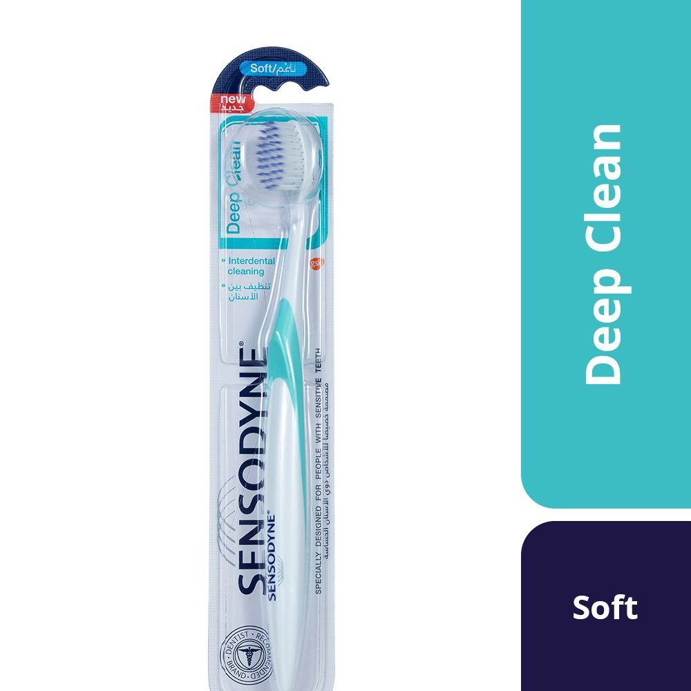 فرشاة أسنان سنسوداين ديب كلين سوفت، تنظيف عميق ولطيف. مثالية للاستخدام اليومي للأسنان الحساسة.