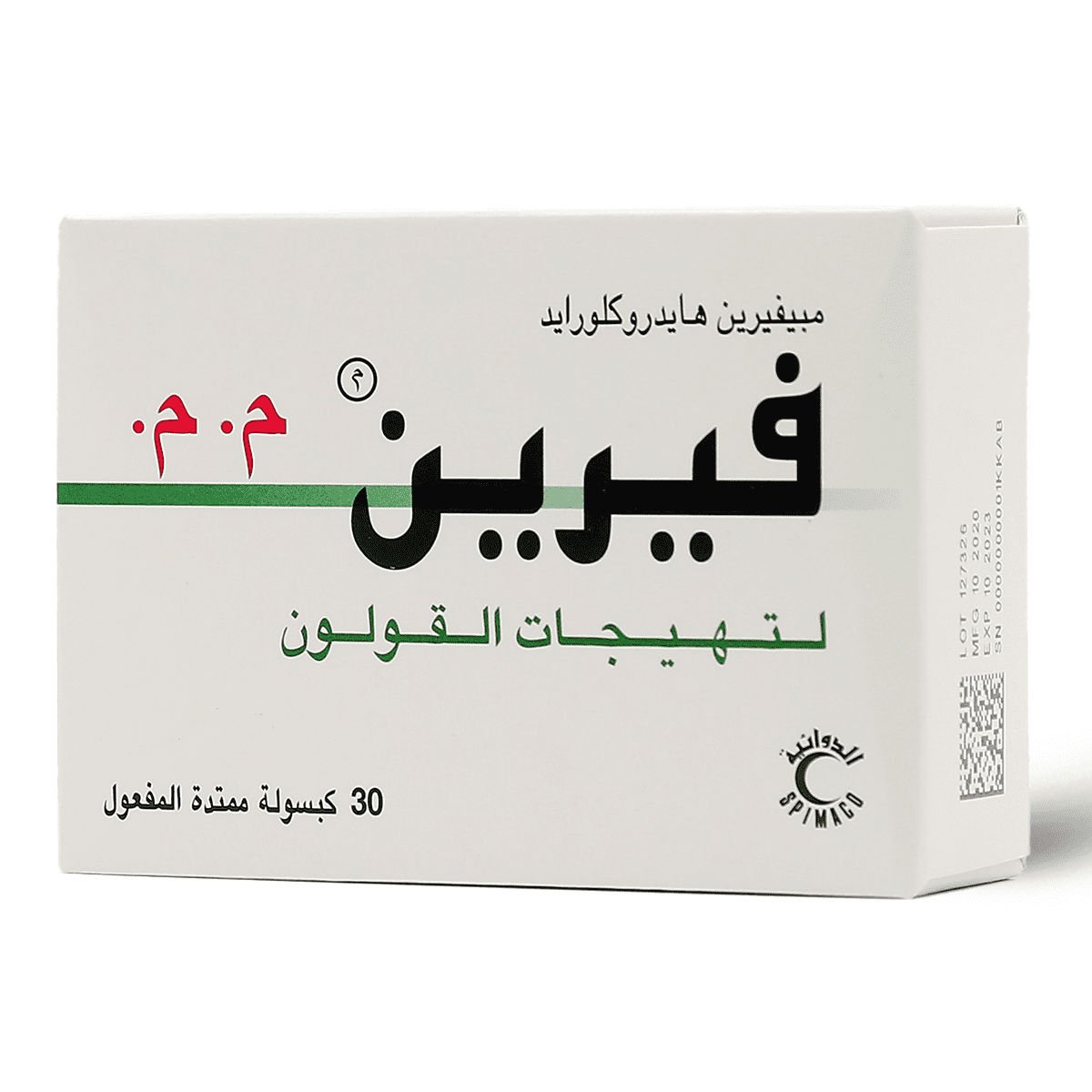 اسم المنتج: VERINE S.R 200 MG العلامة التجارية: Verine الوصف العام: دواء يحتوي على المادة الفعالة ميبيفيرين (Mebeverine). يُستخدم لتخفيف الأعراض المصاحبة لمتلازمة القولون العصبي مثل التشنجات، والتقلصات، والانتفاخ. فوائد المنتج: – يخفف من تشنجات وألم القولون. – يقلل من انتفاخ البطن. تعليمات الاستخدام: يؤخذ حسب توجيهات الطبيب. الجرعة المعتادة هي كبسولة واحدة مرتين يوميًا. معلومات إضافية: – الشكل الصيدلاني: كبسولات. – التركيب: ميبيفيرين 200 مجم. – تحذيرات: لا يُستخدم بدون استشارة الطبيب. يُحفظ بعيدًا عن متناول الأطفال. – الكمية: 30 كبسولة.